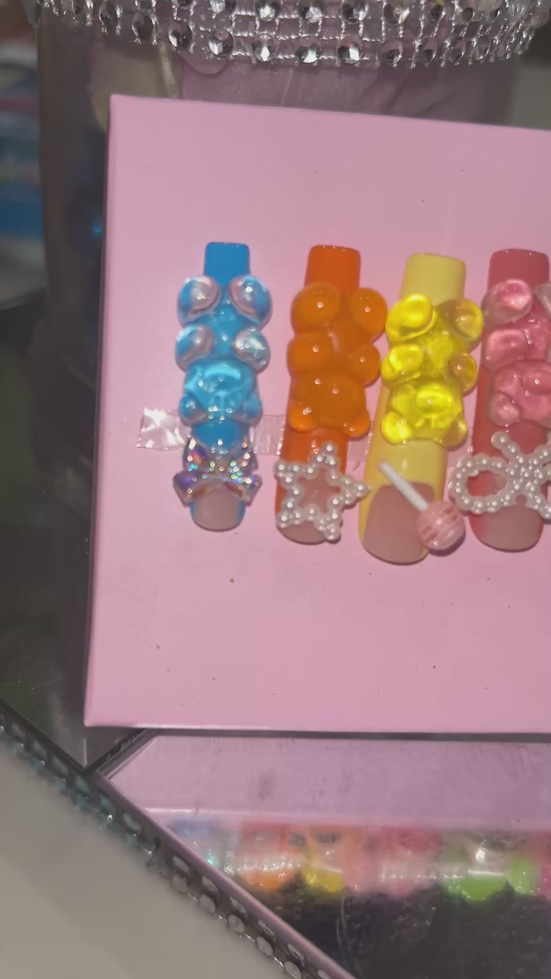 These handmade acrylic press on multi color nails are durable and reusable if removed properly. With proper application, they can last 2-4 weeks, making them a long-lasting and cost-effective option for trendy, colorful nails. Made with precision and care, they offer a professional and stylish look.